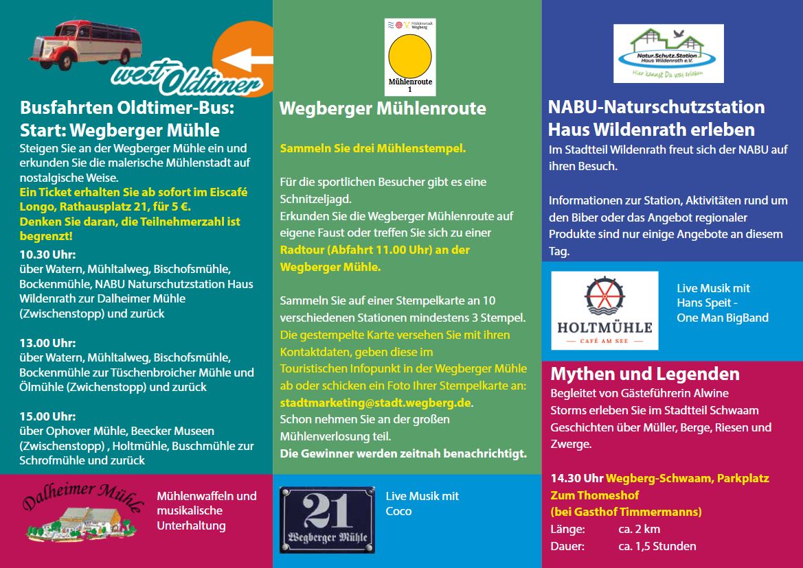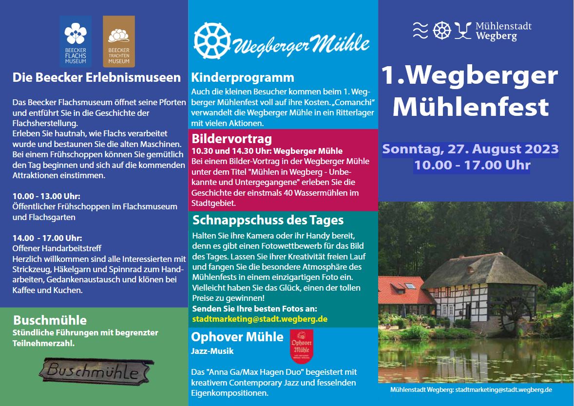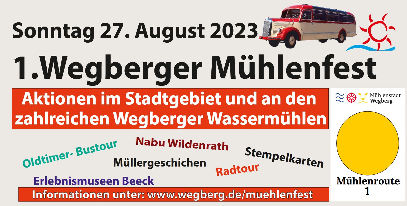 Aktuelle Infos unter: https://www.wegberg.de/tourismus-kultur/wegberger-muehlenfest/